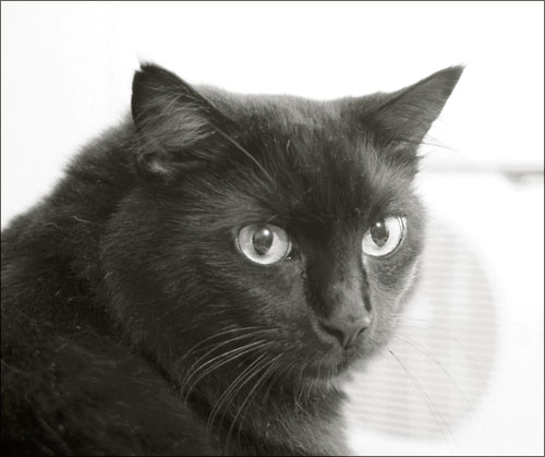 She has cats. Or maybe the cats have her. |